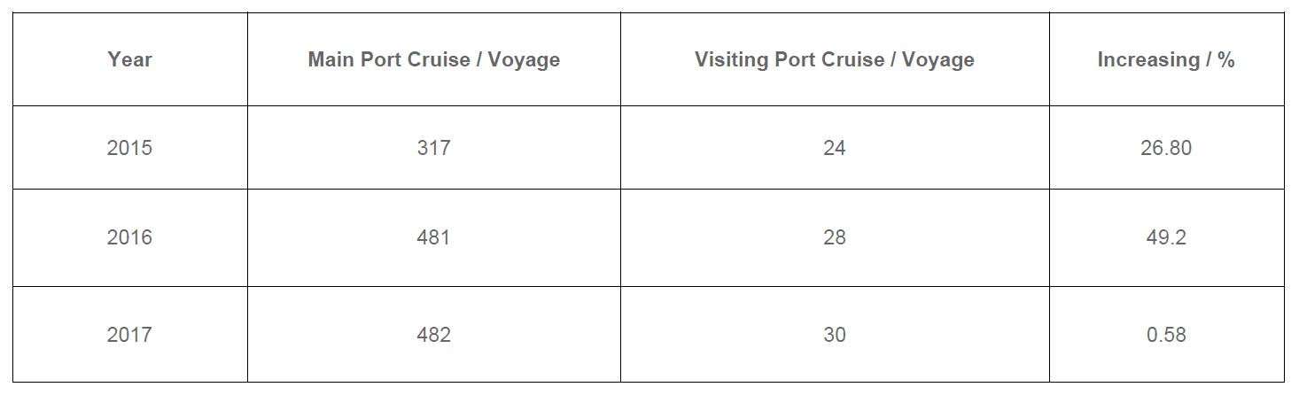 By 2018, the passenger throughput of the national cruise terminal from January to July totaled 2.837 million passengers,